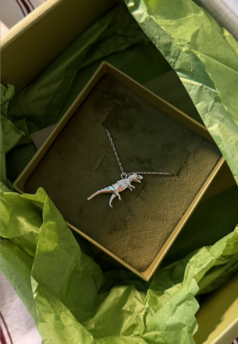 Абсолютный бестселлер нашей коллекции. В ироничном и харизматичным колье с динозавром остаться незамеченной точно не получится, а вот заявить о себе, как о стильной персоне - очень даже
