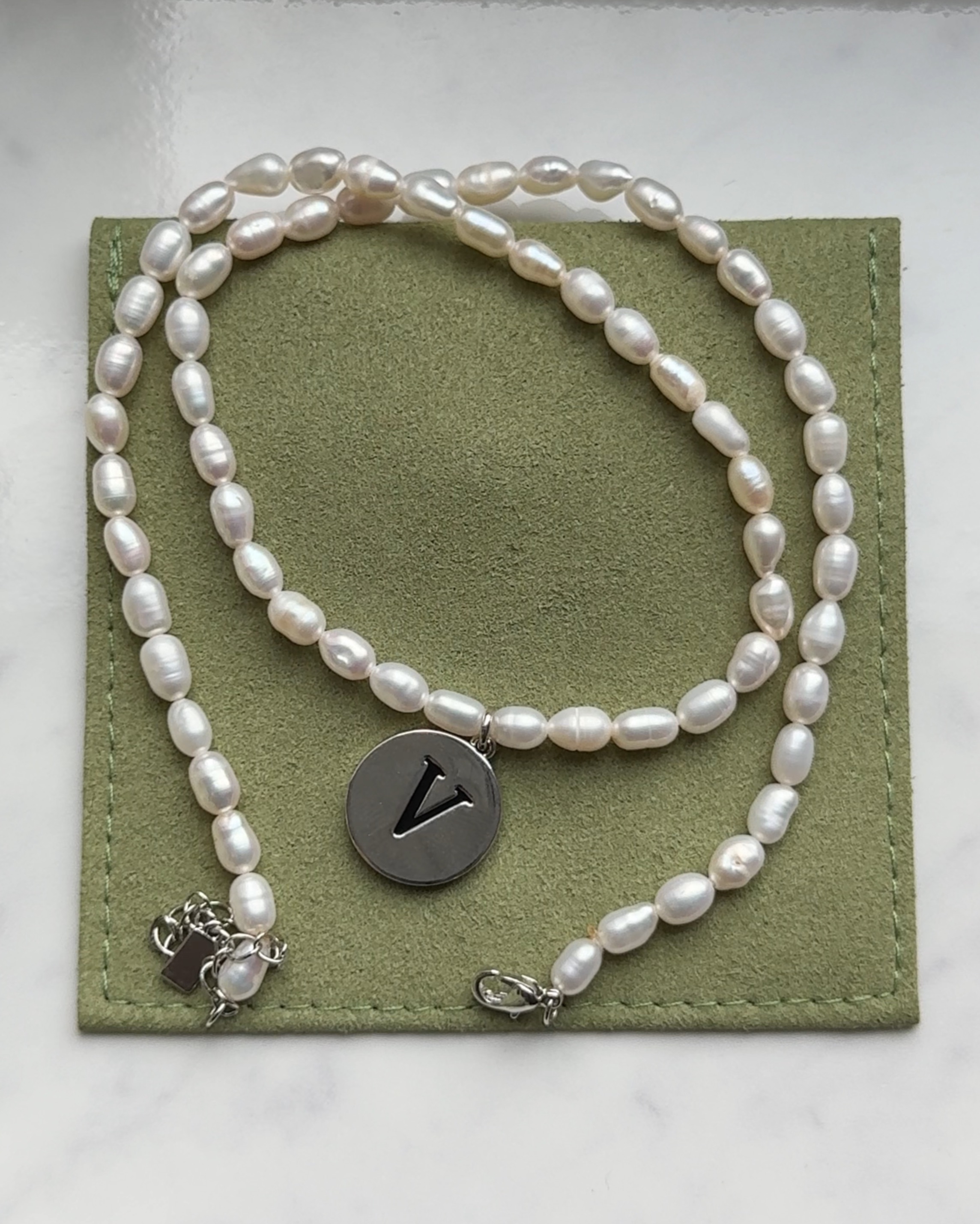 Выполнено с родиевым покрытием, которое защищает украшение от окисления и потемнения. Буква прописана эмалью, материал латунь
